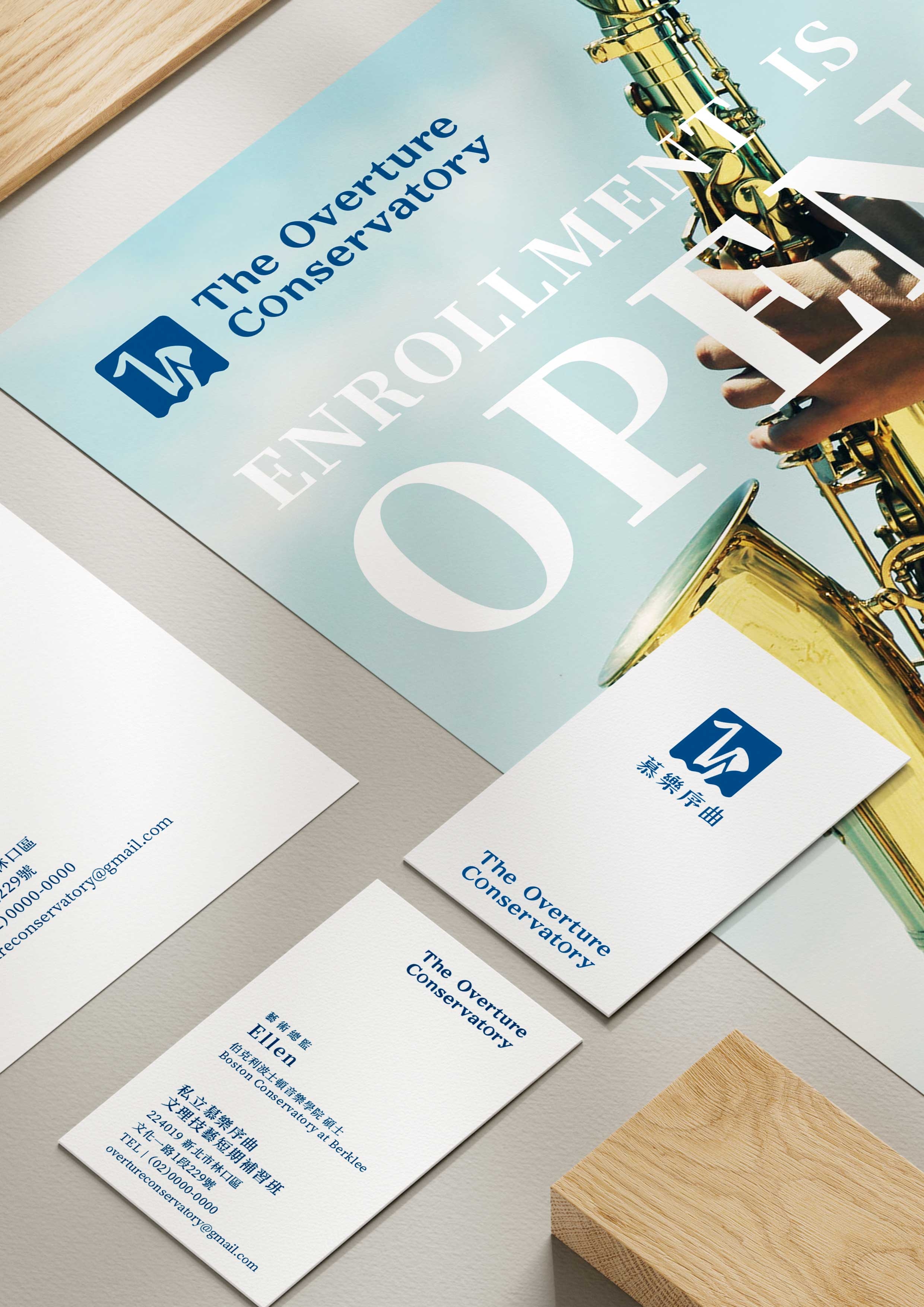 在中英文字體上,我們為「慕樂序曲The Overture Conservatory」量身打造專屬中英文標準字體。設計概念以「現代古典」為基調,確保品牌具備經典的優雅與新穎的時代感。